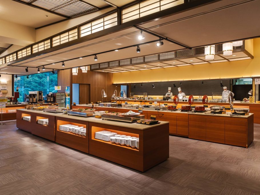朝食も和洋のビュッフェで、食事処は随時リニューアル。レイアウトに工夫を凝らし、混雑が生じないようにしているのでスムーズに食事を楽しめます。