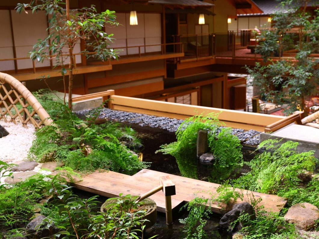 ・館内施設 浴場:大浴場・露天風呂・貸切風呂・ドライサウナ・ミストサウナ(源泉掛け流し/露天風呂付客室4室)、宴会場(5室、36~185畳)、コンベンションホール(300人)、料亭(13室)、個室食事処(9室)、ティーラウンジ、売店