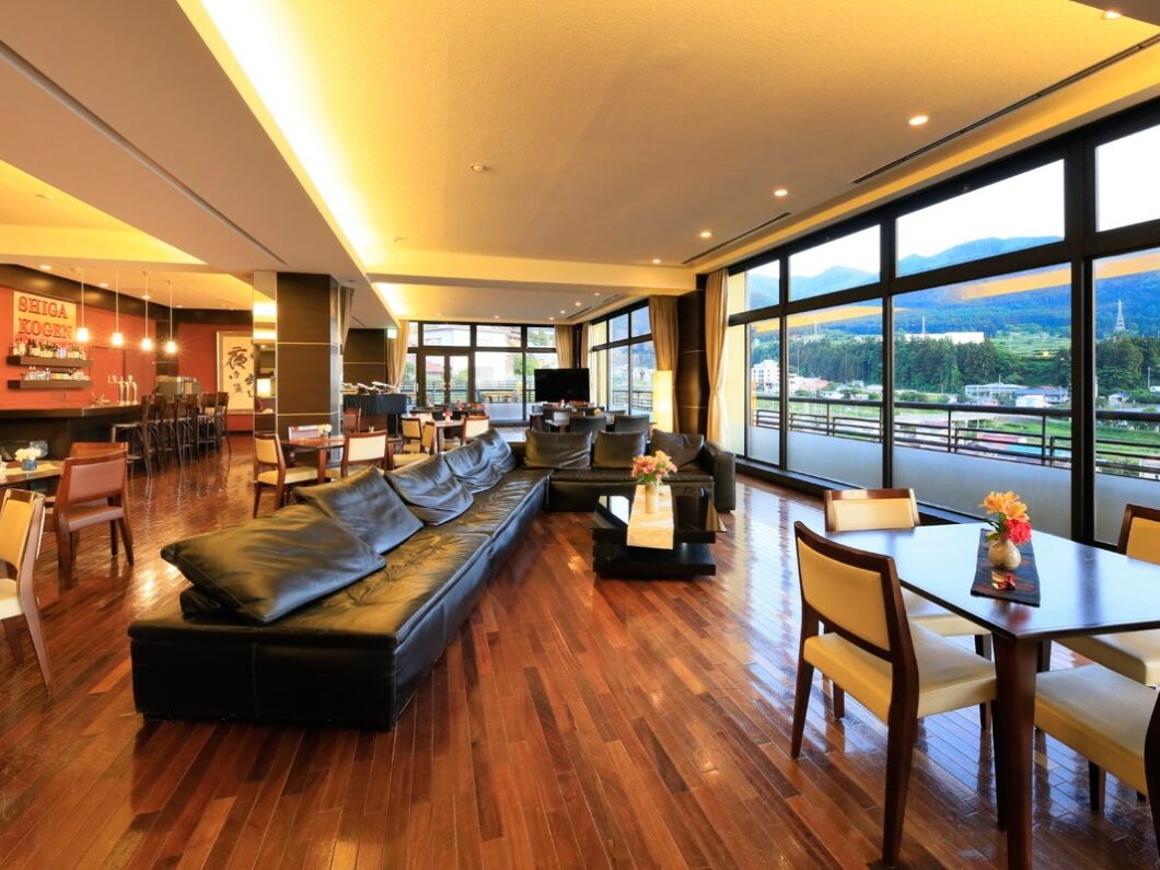 長野県湯田中温泉の「一茶のこみち美湯の宿」は、施設内のさまざまな部分で細やかな気配りが感じられる宿。館内に入ると、モダンな雰囲気のロビーラウンジが宿泊客を出迎え、窓からは湯田中の街並みや美しい夕日を眺めることができます。