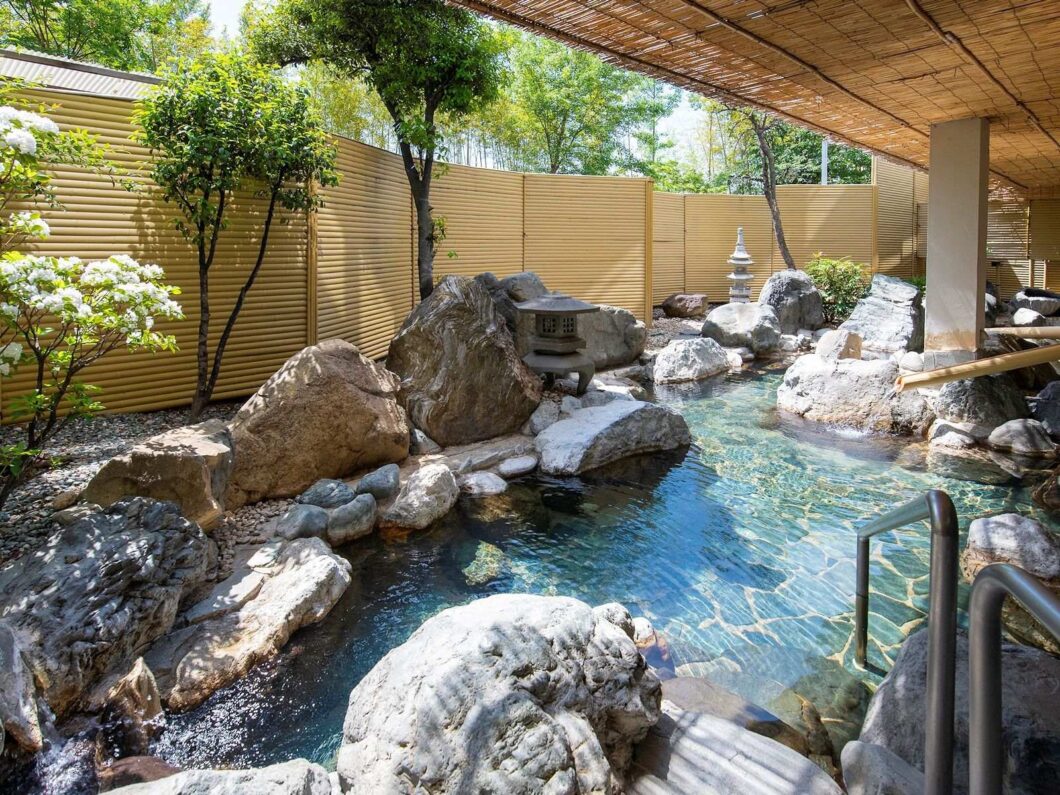 ・館内施設 浴場:大浴場・露天風呂・ドライサウナ・ミストサウナ(源泉掛け流し/客室22室)、宴会場(7室、28~450畳)、コンベンションホール(500人)、レストラン(220席)、個室食事処(38室)、カラオケ(4室)、居酒屋、ゲーム、売店、エステサロン