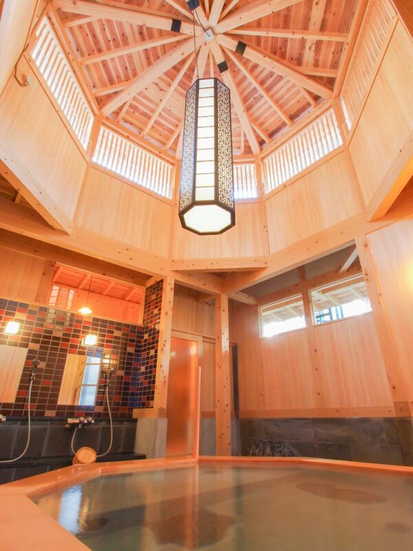 露天風呂や大浴場のほか、八角屋根を抱き、「天平大浴堂」に用いた同じ檜から八角の湯淵を刻んだ「睡蓮」などの貸し切り風呂もあります。