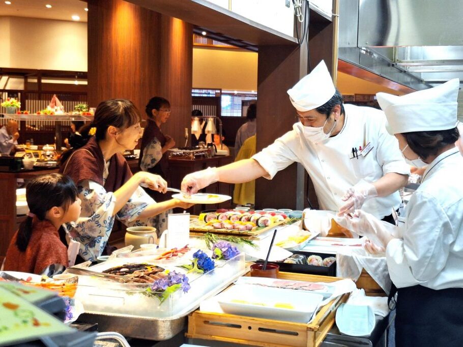 夕食は、航空会社のファーストクラスの機内食を手掛けた総料理長が監修する「大人極上ディナービュッフェ」。約550平方メートルのオープンキッチンを備えた和風メインダイニングで堪能することができます。