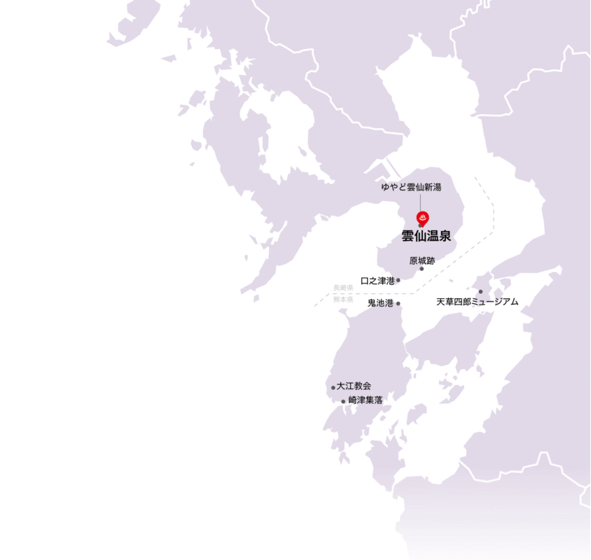 外国人が雲仙をめざした理由は、夏の暑さから解放される避暑地だったこと。そして欧米人にバカンスという文化があったこと。雲仙に最初の洋式ホテルが建ったのは明治21年のことである。欧米人たちは天然の川のプールで泳いだり、キャンプをしたり、ハイキングをしたり、時間をかけて雲仙を満喫している。第二次大戦前に雲仙を訪れた著名人の中には、小説「大地」で知られるノーベル文学賞作家パール・バックや中国の国民党指導者蔣介石、アメリカの作家ヘレン・ケラーがいる。観光のメインスポットは雲仙地獄。新たにスリルたっぷりの雲仙地獄ナイトツアーが楽しめるほか、湯せんべいや雲仙焼き、ガラス細工などの体験や絹笠山トレッキングなどお楽しみメニューが揃う。