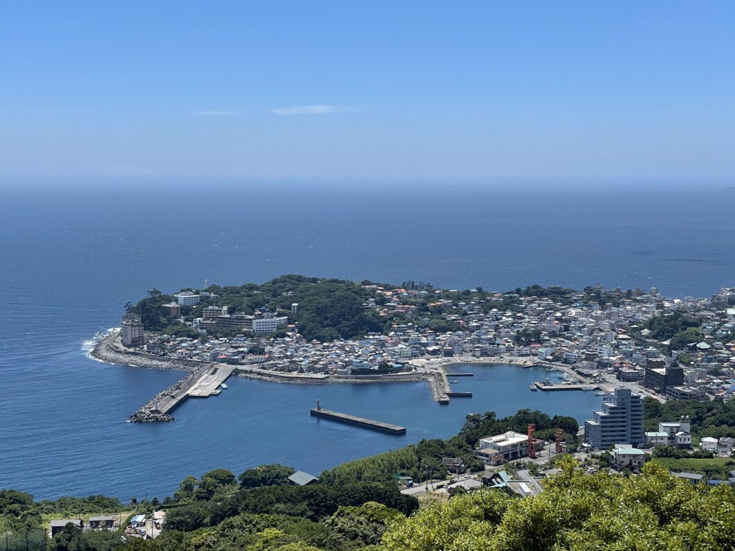 静岡県東伊豆町にある稲取温泉は海岸線に小さく突き出た岬に位置し、伊豆大島と太平洋を望むロケーションが雄大な、1956年に温泉が湧出した比較的新しい温泉地。
