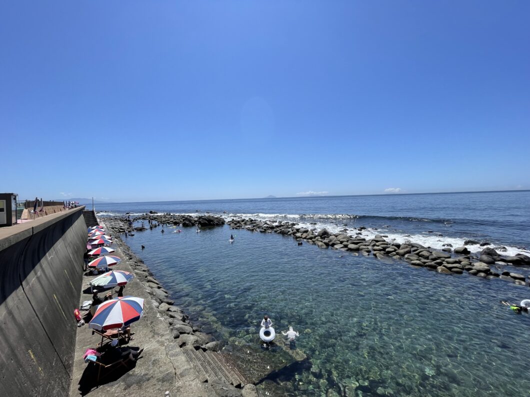 7月19日には、温泉街に近い池尻海水浴場と海浜プールから成る「磯 SeaGarden IKEJIRI」が海開きを迎えました。池のような形に、岩に囲まれた海水浴場のため波の浸入が少なく、小さな子供も安全に遊べることからリピーター増加中の注目スポット。スノーケリングで色とりどりの魚を観察したり、岩場のカニやエビを捕ったりなど、砂浜ではできない体験はぜひチャレンジしたいところ。潮位が深かったり、海が苦手な子供は、隣接する海浜プールがオススメです。同エリアで毎年開催されている「さざえのつかみ捕り大会」も大人気で、今年は7月28日~30日に開かれました。