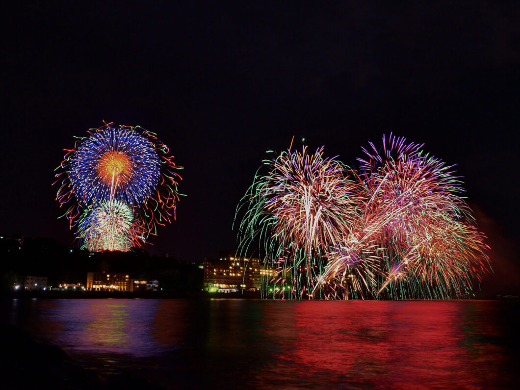 夏の恒例行事、花火大会は7月21日から5日間、8月25日から5日間と合計10日間の開催。打上げ場所は旅館の稲取銀水荘前と池尻海岸サンライズテラス、稲取漁港の3カ所。それぞれ午後8時30分から10分間打ち上がる、約300発の大輪は圧巻!