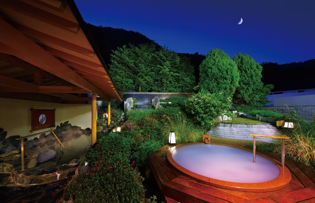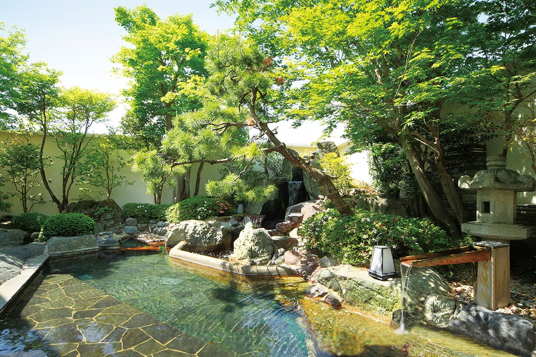 楽しみ方としては、少し早めにチェックインしていただいて、まずはお風呂に入られるのが一番良いのではないかと思います。そして、二つの大きな大浴場に、それぞれ二つずつの露天風呂がありますので、それらを巡っていただくような感じで楽しんでいただけます。大浴場の中の露天風呂はそれぞれ少し趣向が異なりまして、深湯とか、シルクバスとか、そういった機能が付いていますので、それも楽しんでいただきながらお入りいただくと良いかと思います。