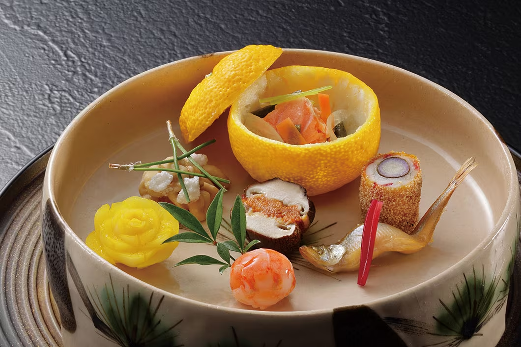 そうですね。例えば、この秋になりますと、柿の形をしたものが前菜で出てきたり、節分の季節になると鬼の形をしたものが出てきたり、夏になるとカタツムリが出てきたり。そういう意味で、日本のちょっとした風景をこの前菜の中に盛り込んでいる、ということが一番の特徴です。それともう一つは、やはり地元の食材をふんだんに使うということで、特にお米は、栃木のお米がすごく美味しいので、白米で炊いてお客様にご提供するということをしております。