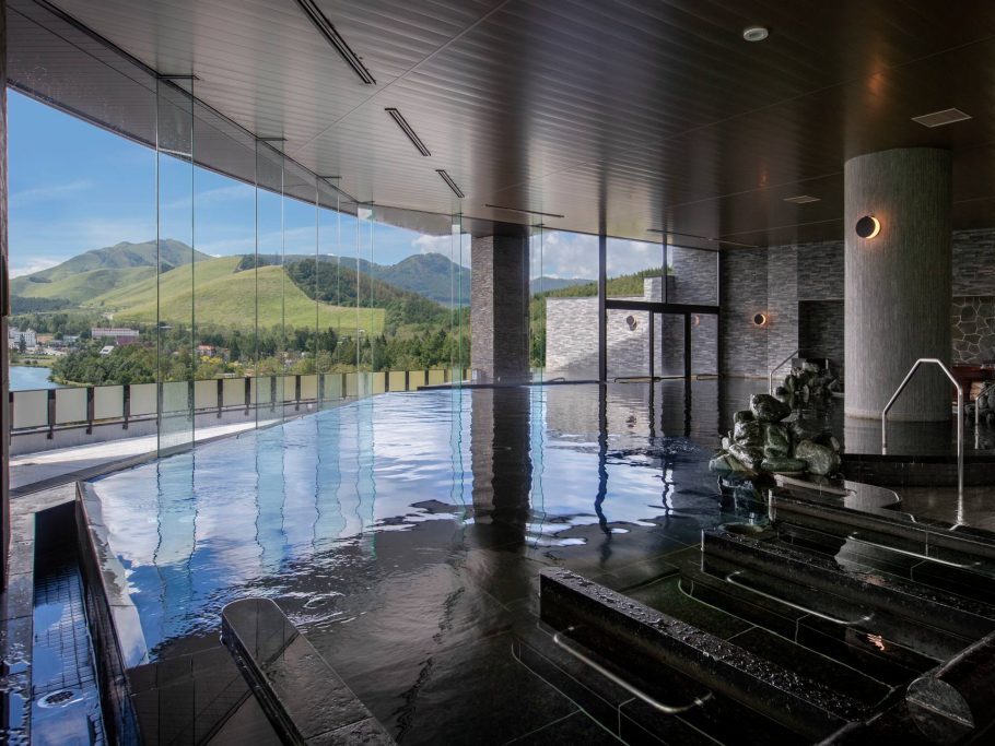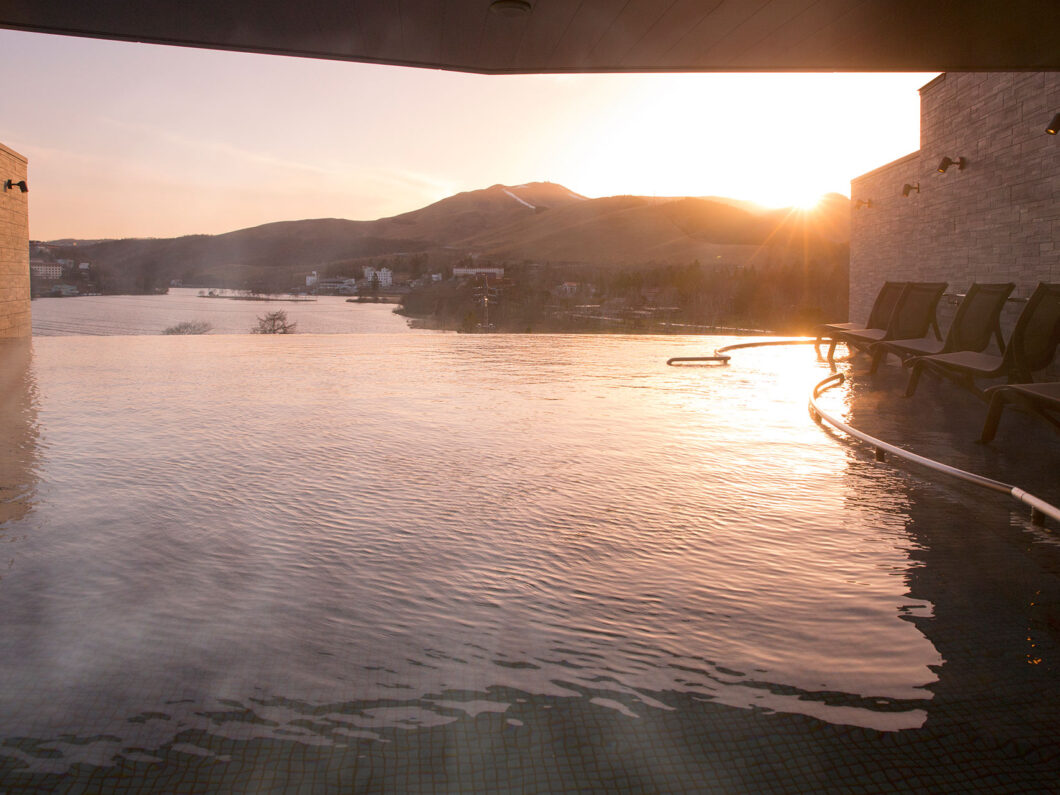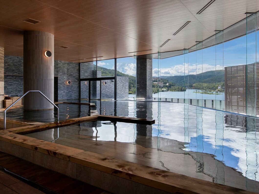 白樺リゾート池の平ホテルの温泉とサウナは、白樺湖や車山の四季折々の絶景を満喫できます。