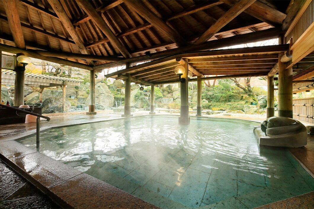 2つの大浴場は「蛍あかりの湯」と「月あかりの湯」。それぞれに趣の異なる露天風呂や湯船を備えており、温泉の素晴らしさを体感できると評判です。