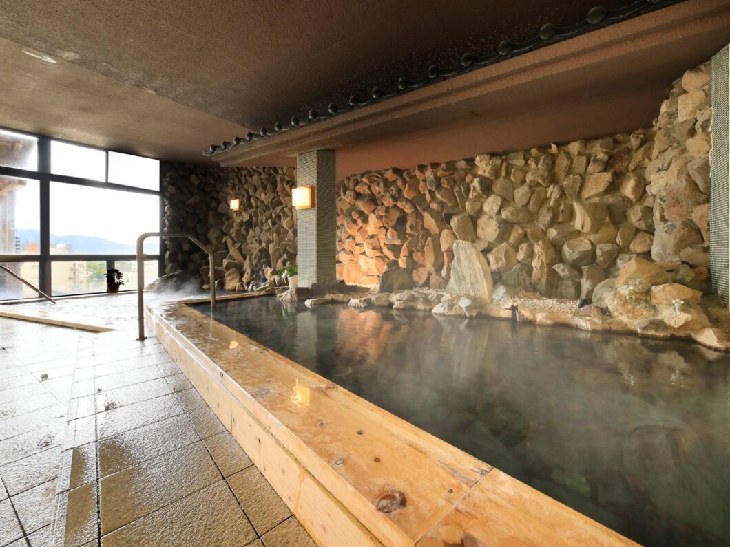 大浴場は「菖蒲(あやめ)ノ湯」「蕗(ふき)ノ湯」。内風呂は全てがジャグジーで、人体へのマッサージ効果とともに、湯を柔らかくする「湯もみ」効果を備えています。