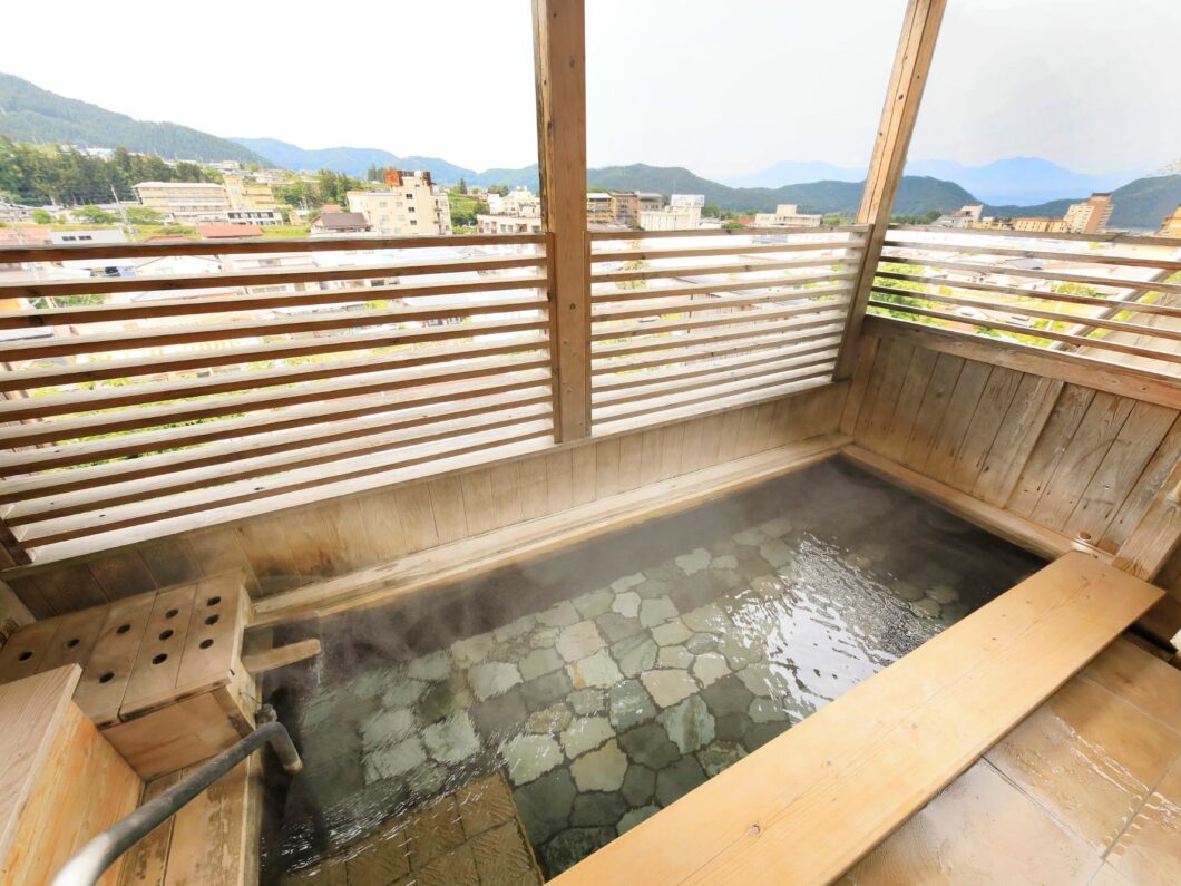 屋上にはプライベート空間の中、温泉が楽しめる貸し切り露天風呂を設置。春夏秋冬、信州らしい景色を眺めながら温泉を満喫できます。 ※40分間2,000円(税込)