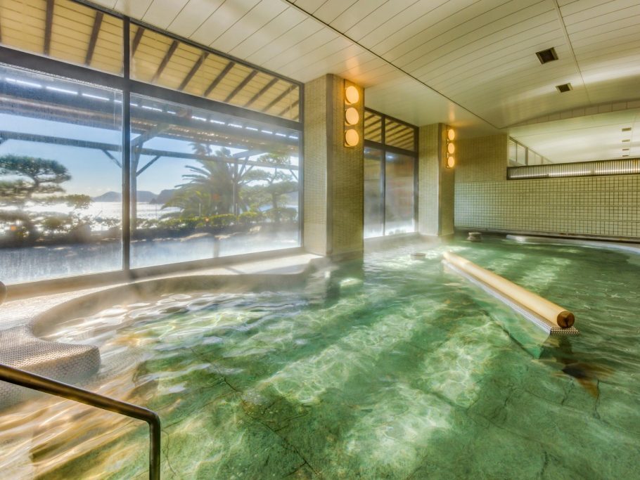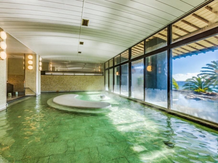 伊豆半島東海岸にある稲取銀水荘の温浴施設は、大浴場やオーシャンビューの露天風呂はもちろん、全17室の露天風呂付き客室も含め、全て自家源泉を使用しているのが自慢のポイントです。