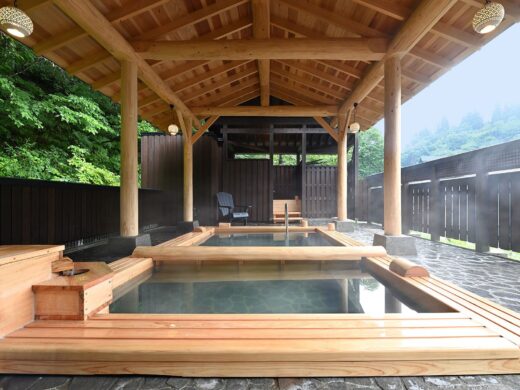 新潟県松之山温泉の「ひなの宿ちとせ」は、周囲に日本の原風景である美しい棚田やブナ林を眺め、冬は積雪が4メートルを超えることもある雪深い地にあります。「日本三大薬湯」の一つといわれる同温泉の湯を源泉掛け流しで堪能でき、さらに雪解け水が育むおいしい米や山菜など、風土そのものを楽しむことができます。